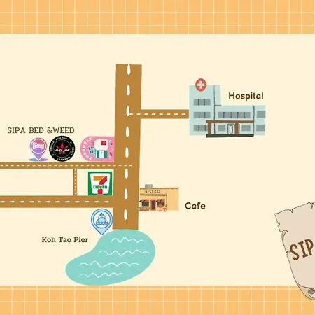 Este el lugar está a un par de minutos en coche de la Playa de Sai Nuan. El hostal está al lado de The Three Rocks. El alojamiento está a 500 metros de Lollipop Cafe & Bar y el J'Nee Thai Food Restaurant, donde los huéspedes pueden cenar. La Bahía Tanote está cerca del Prime78 Albergue.